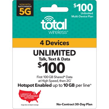 Total Wireless 85 Unlimited Family 30 Day 3 Lines Prepaid Plan First 60gb Shared Data At High Speeds Then 2g 10gb Of Mobile Hotspot Per Line Direct Top Up Walmart Com